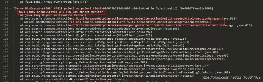 发现连接线程的并发度果然小很多了,这个时候要再确认一下是否是连接池设置导致的原因,于是将没回滚的机器进行jstack了,对Java进程中分配的子线程进行了分析,总于可以确认问题。
