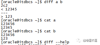 会列出两个文件的不同点并用箭头表示是哪个文件里的内容,详细的参数可见diff --help查询