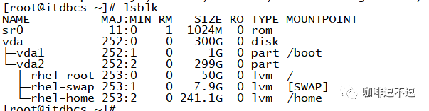 TYPE:本栏显示块设备是否是磁盘或磁盘上的一个分区。在本例中,sda和sdb是磁盘,而sr0是只读存储(rom)。