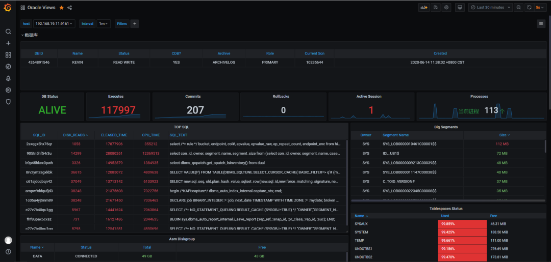 导入完成后,我们可以看到导入的oracle展示界面,点击即可查看各种监控图标。如下图: