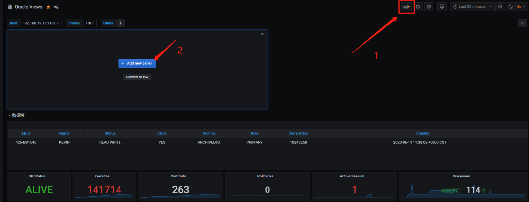 指标获取到后,在grafana oracle面板中增加该图。