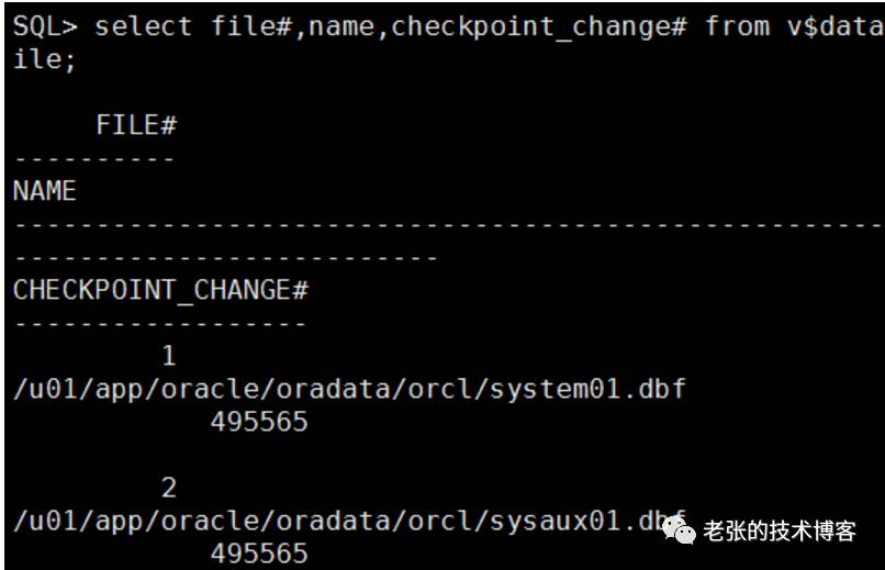 从数据文件头中读取scn(这里的checkpoint_change#是最后一次事务的提交的scn)