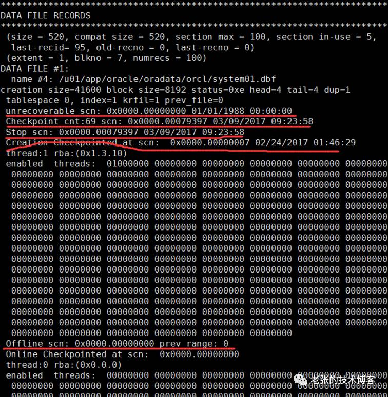 为了更好地理解oracle scn,我将控制文件转储了出来: