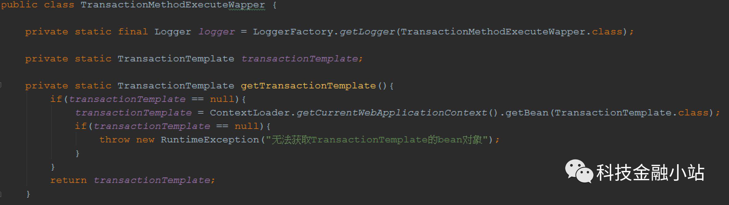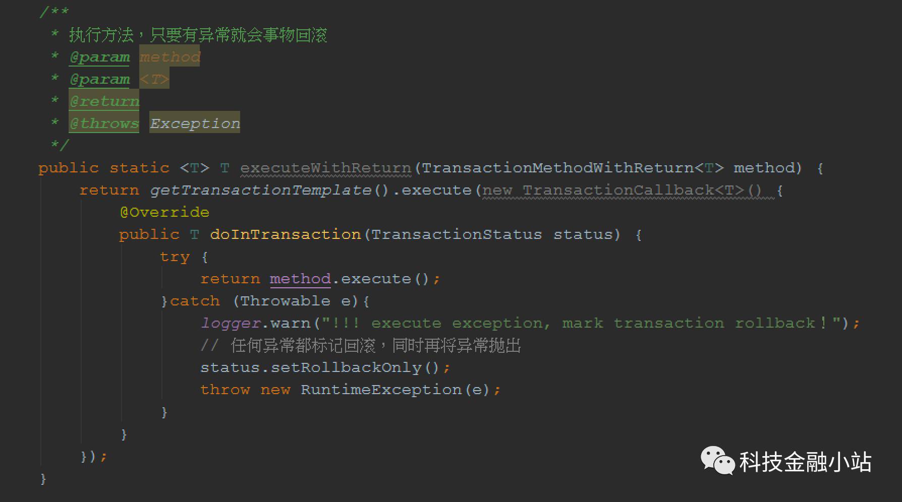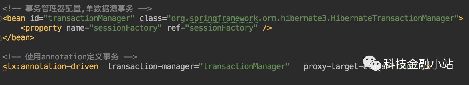 下面是我在一个项目中使用的编程事务控制,其中抽象了一个事务方法调用的工具类,用于处理异常时事务回滚。首先定义事务管理器及事务模板:
