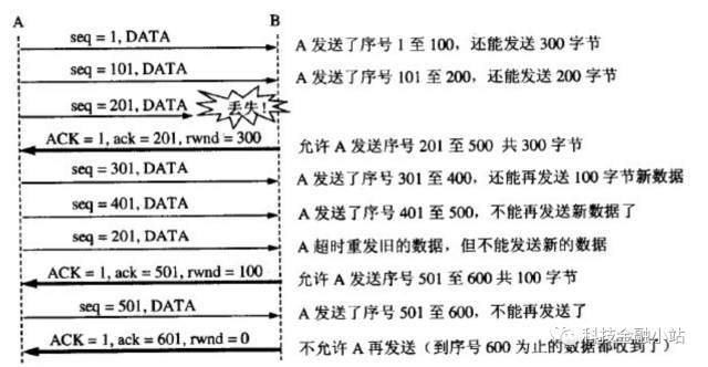 一般说来,我们总是希望数据传输的更快一些,但如果发送方把数据发送的过快,接收方就可能来不及接收,就会造成数据的丢失。所谓的流量控制就是让发送方的发送速率不要太快,要让接收方来的及接收。其控制原理是就是运用TCP报文段中的窗口大小字段来控制,发送方的发送窗口不可以大于接收方发回的窗口大小。如下面的示例: