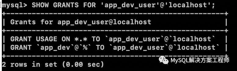 之后,用app_dev_user登陆服务器,查看当前角色权限: