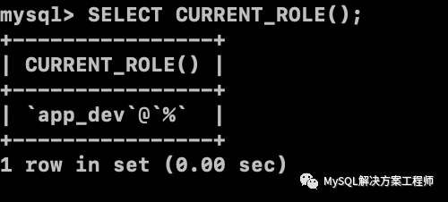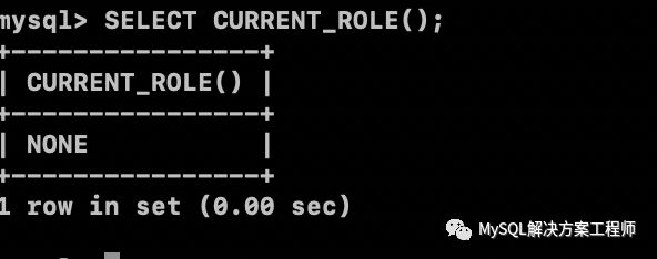赋予用户帐户的角色在帐户会话中可以处于活动状态,也可以处于非活动状态。如果赋予的角色在会话中处于活动状态,则具有相应的权限,反之则没有。要确定当前会话中哪些角色处于活动状态,使用CURRENT_ROLE()函数。