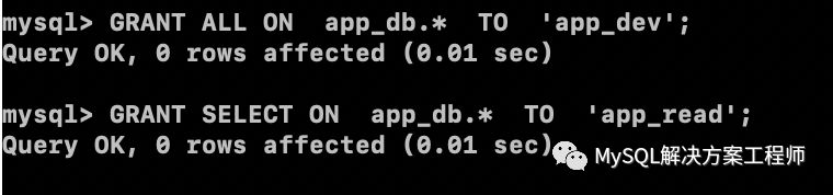 角色创建以后,需要对其赋予相应的权限。使用下列语句分别对角色赋予全部权限、只读权限和读写权限: