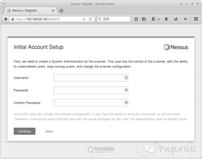 3、通过浏览器访问该主机,协议为https,端口8834。此时系统要求创建管理员用户: