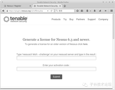 5、访问https://plugins.nessus.org/v2/offline.php,分别输入challenge code及Activation Code并提交