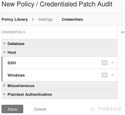 12、在Credentials中输入登陆系统的认证信息。这里支持PostgreSQL、DB2、MySQL、SQL Server、Oracle、MongoDB数据库,Unix/类Unix、Windows操作系统,活动目录,ESX,vCenter等方式。