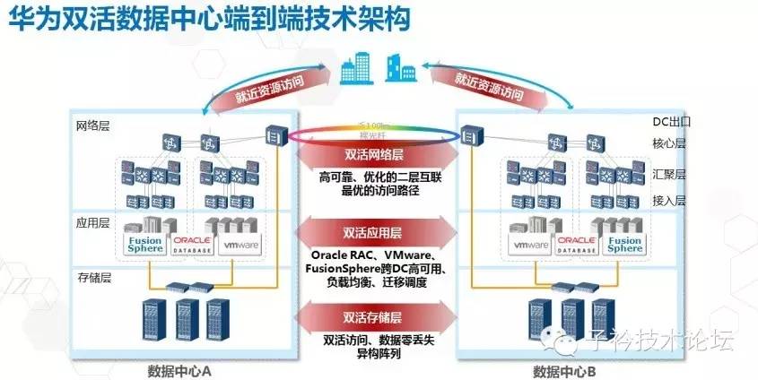 双活数据中心的核心是存储层的双活,由于受到存储网络时延的限制,要保证两地业务数据的同步复制,就目前的技术水平来看,两地双活数据中心最远支持100km。