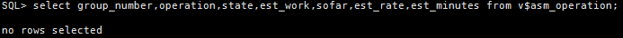 SELECT group_number, operation, state, est_work, sofar, est_rate, est_minutes FROM v$asm_operation;