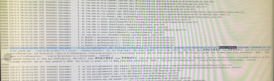 1. 迁移后出现应用跑批前备份报错,现象如下图: