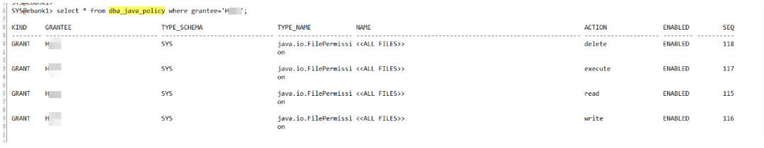 exec DBMS_JAVA.GRANT_PERMISSION(grantee => 'HSAP',permission_type => 'SYS:java.io.FilePermission',permission_name => '/oracle/db/product/11.2.0/bin/expdp',permission_action => 'read,write,execute');