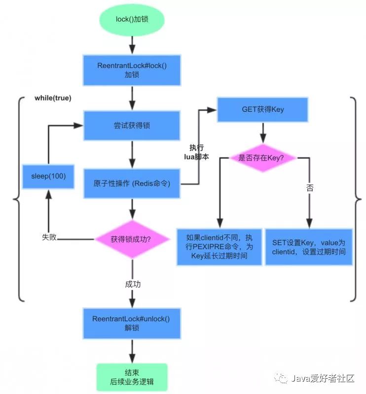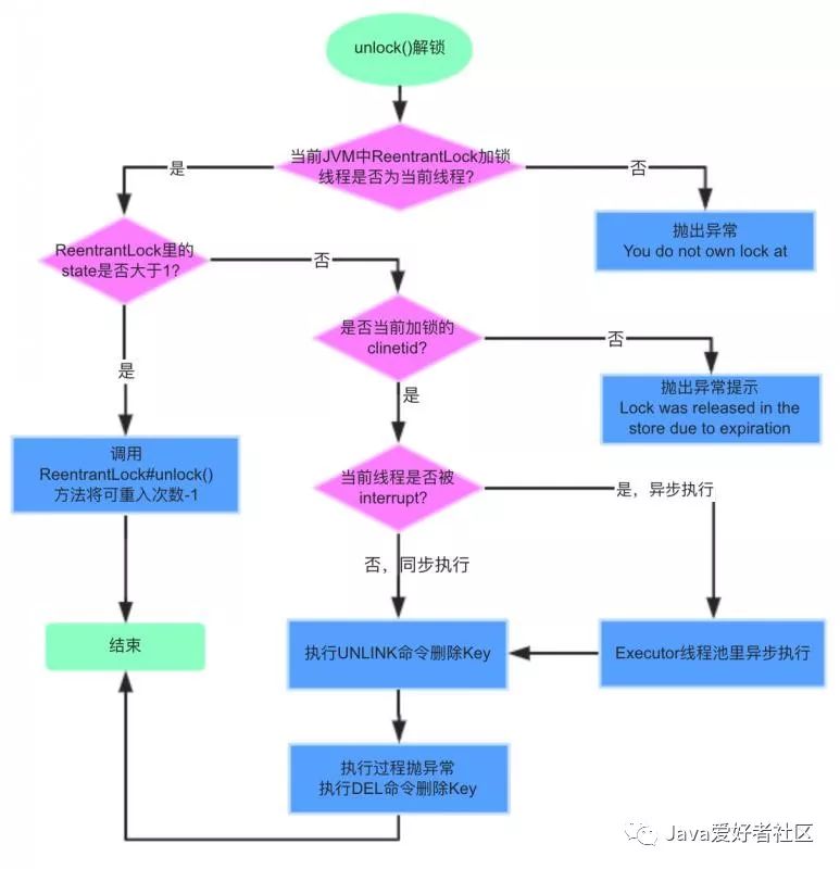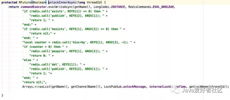 unlock()解锁过程也是同样的,通过lua脚本执行一大坨指令的。