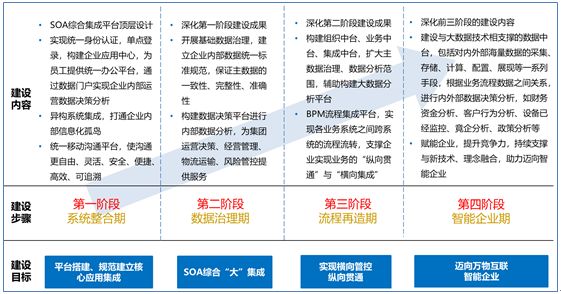 本阶段对第一阶段建设成果深化的同时,主要对企业内部系统中的数据进行统一治理,包括主数据治理及数据分析平台的建设,满足企业对业务的初步分析。