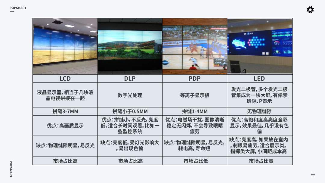1.了解市场上常见的大屏及其优缺点