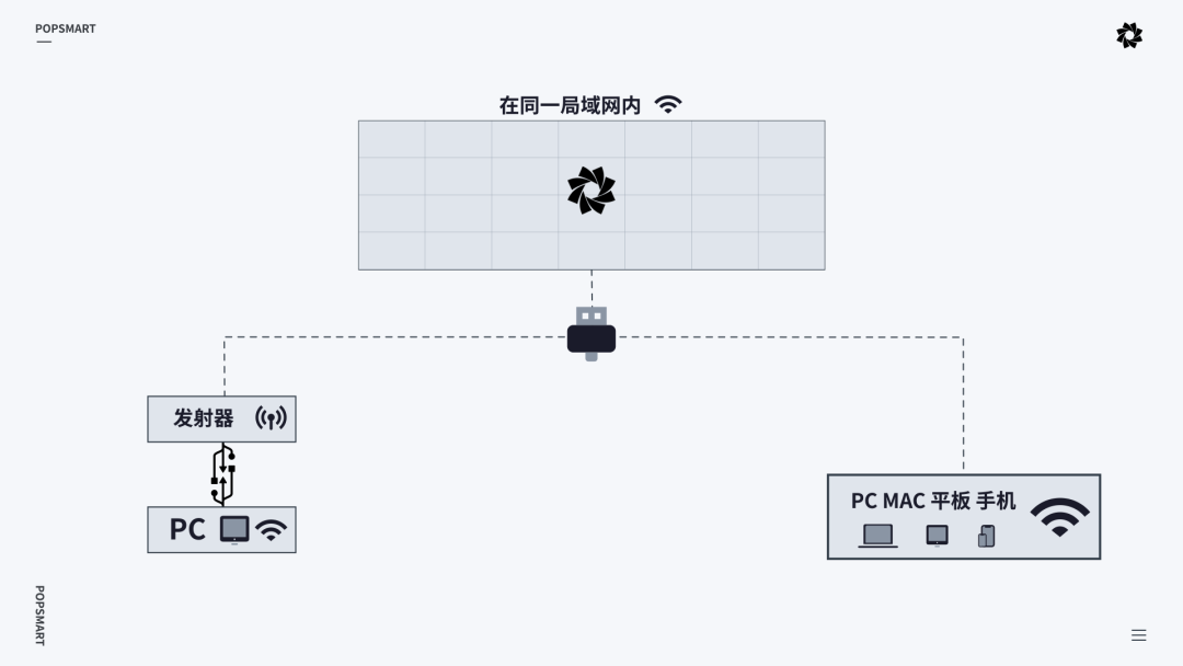 可视化大屏展示方式几乎全是投屏,就是将PC机通过信号投放到大屏上,交互操作方面也是同步进行,就像镜像屏幕一般。