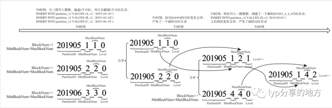 MergeTree的特点在于分区的合并,从分区的命名可以解读其合并逻辑。命名规则: