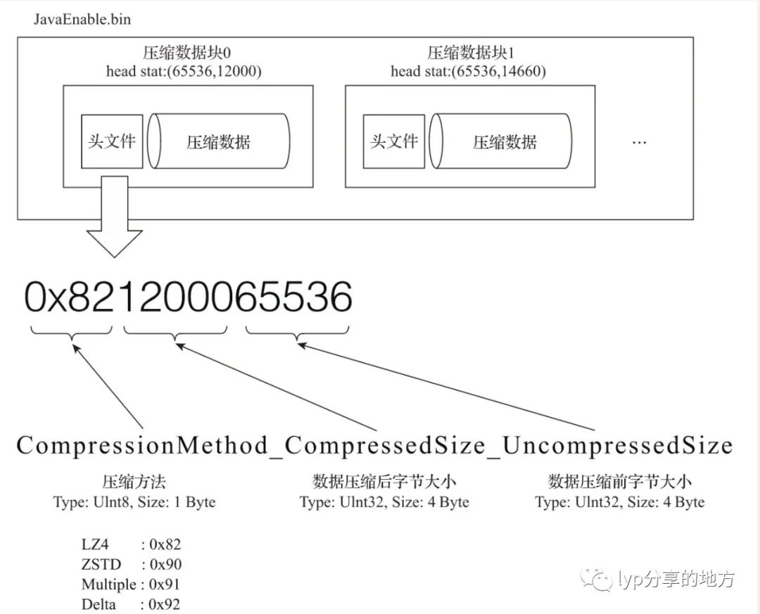 .mrk中每行数据,对应压缩文件中偏移量和解压缩文件中偏移量。