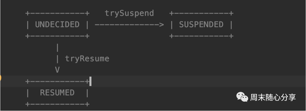 private fun trySuspend(): Boolean {_decision.loop { decision ->when (decision) {UNDECIDED -> if (this._decision.compareAndSet(UNDECIDED, SUSPENDED)) return trueRESUMED -> return falseelse -> error("Already suspended")}}}private fun tryResume(): Boolean {_decision.loop { decision ->when (decision) {UNDECIDED -> if (this._decision.compareAndSet(UNDECIDED, RESUMED)) return trueSUSPENDED -> return falseelse -> error("Already resumed")}}}
