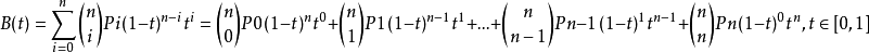 t 值的计算方式为:j/N,N代表要生成的贝塞尔点个数,n代表控制点的数量,通常我们可以取三个控制点,即n=2, 此时第j个贝塞尔点坐标为 B(t) = (1-t)^2*P0 + 2*(1-t)*t*P1 + t^2*P2 (j范围是[0, N))