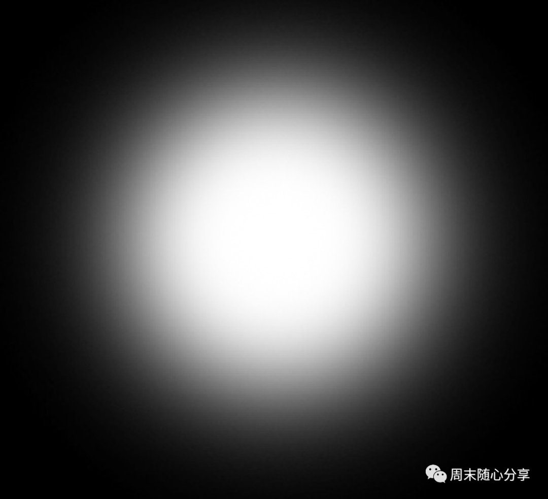 那怎么画圆形呢,肯定不是用openGL渲染出来的,那样不仅效率低,而且不是我们要的效果,我们需要一张mask图,这张图从中心到四周,不透明度从大到小逐渐过渡,类似下面这张图:
