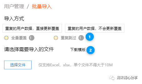 在用户选择批量导入数据时,可以让用户选择【完全覆盖】或者【重复跳过】