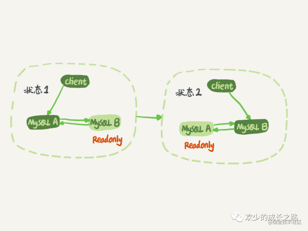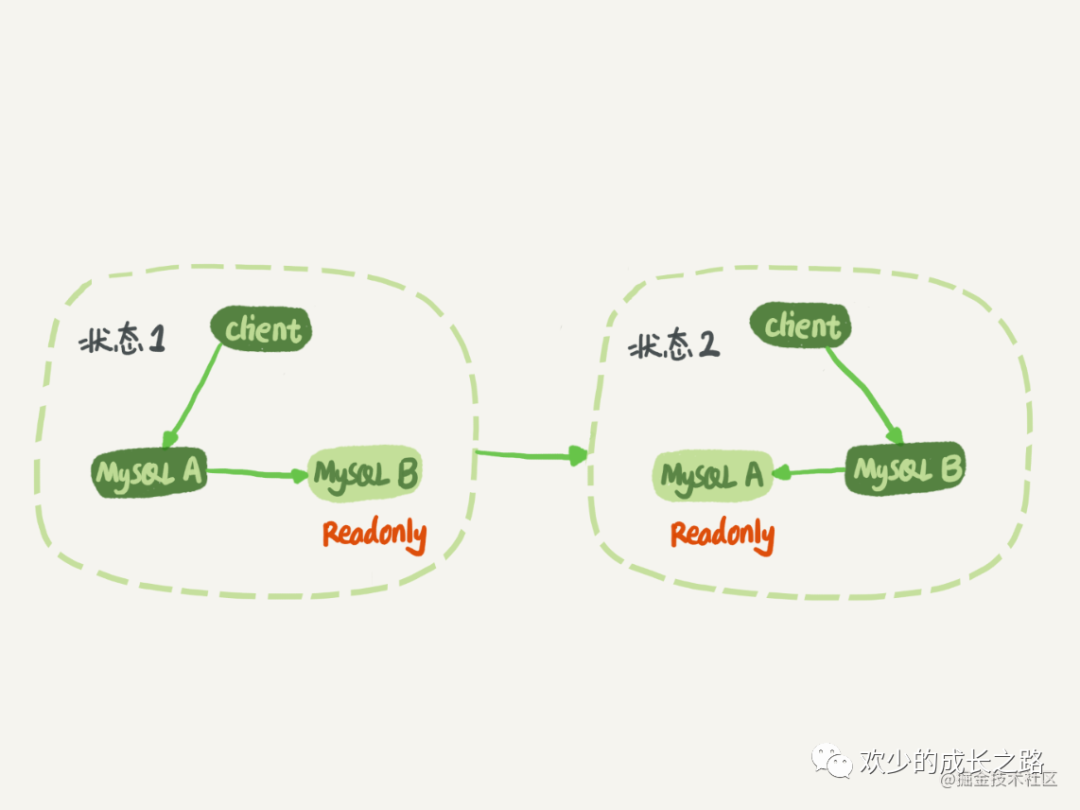 主从在需要切换的时候就是由状态1转变成状态2的这个过程。