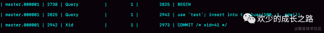 第二行是一个 BEGIN,跟第四行的 commit 对应,表示中间是一个事务;