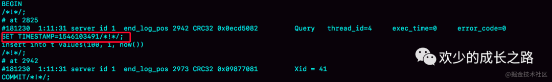 这里多了一个指令:SET TIMESTAMP=1546103491