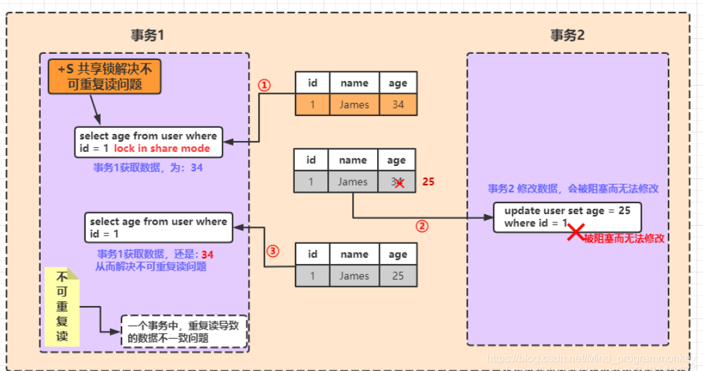 where name这里不是索引,为该行加一把共享锁之后,其它数据再次查询该行可以正常查询;