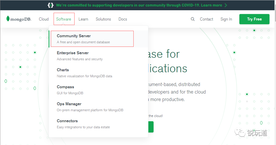 首先搜索打开 MongoDB 官网[2],选择 Software