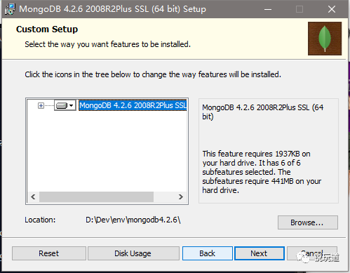 指定安装目录到 D:\Dev\env\mongodb4.2.6