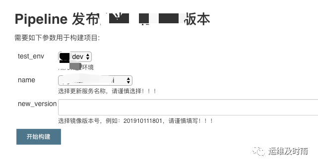 pipeline {agent anystages {stage('Build') {input {message "确认发布以下信息吗?\n环境信息:${test_env}\n服务名称:${name}\n版本:${new_version}"ok "Yes"/*submitter "duqiu"*/parameters {string(name: 'IS_DEPLOY', defaultValue: 'Yes', description: '确认')}}when {environment name: 'IS_DEPLOY', value: 'Yes'}steps {”“”待执行的job块“”“}}}}