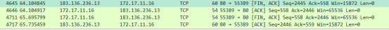 80 端口与 55389 之间的四次来回就是"四次挥手"过程: