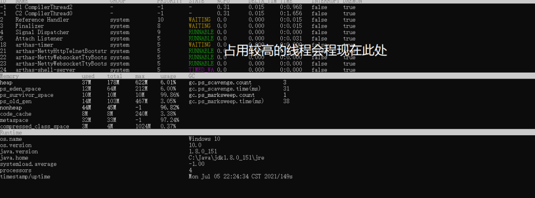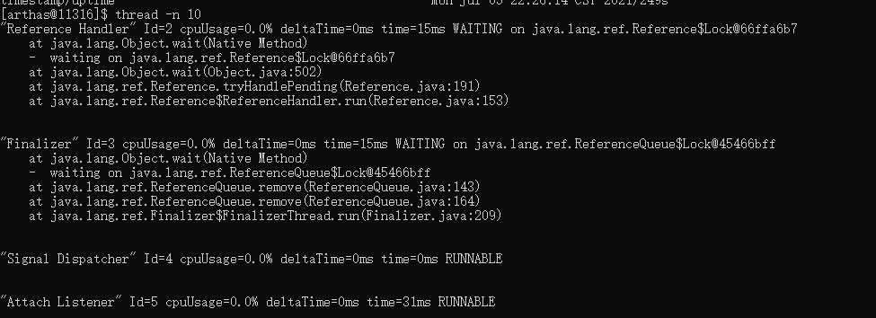 [INFO] Try to attach process 70961[INFO] Attach process 71560 success.[INFO] arthas-client connect 127.0.0.1 3658,---. ,------. ,--------.,--. ,--. ,---. ,---.O \ | .--. ''--. .--'| '--' | O \ ' .-'| .-. || '--'.' | | | .--. || .-. |`. `-.| | | || |\ \ | | | | | || | | |.-' |`--' `--'`--' '--' `--' `--' `--'`--' `--'`-----'wiki: https://arthas.aliyun.com/docversion: 3.0.5.20181127201536pid: 70961time: 2021-07-05 21:16:24
