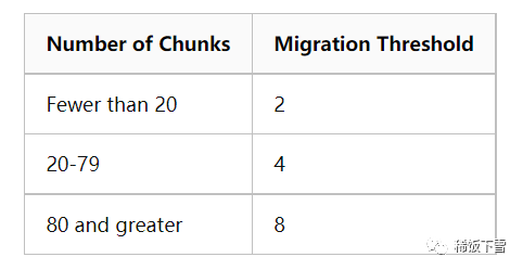 对于数据的不均衡是根据两个分片上的 Chunk 个数差异来判定的,阈值对应表如下: