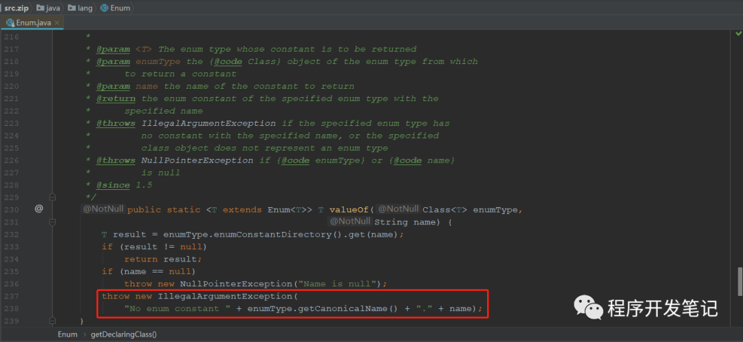 这个异常("No enum constant …")来源于 JDK 中枚举类中的 valueOf() 方法中: