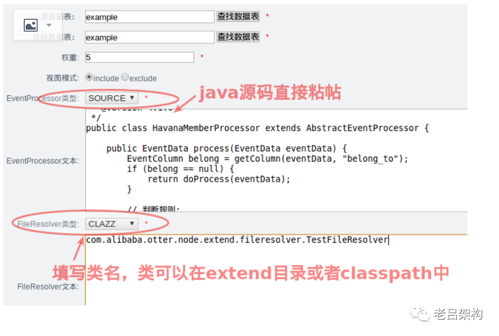 用Event Processor:package com.ttk;import java.util.Arrays;import java.util.List;import com.alibaba.otter.shared.etl.extend.processor.EventProcessor;import com.alibaba.otter.shared.etl.model.EventData;public class DescMessageEventProcessor implements EventProcessor {//黑名单List<String> excludeTable = Arrays.asList("ba_currency_daily");//白名单List<String> includeTable = Arrays.asList("edf_org");@Overridepublic boolean process(EventData event) {return includeTable.contains(event.getTableName());}}
