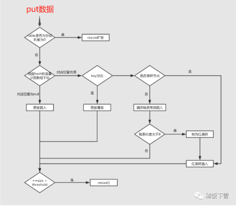 但是,到了这里其实也并没有分配好数组,可以看到resize方法,其实也是在put的时候才会真正进行数组的分配,也就是懒加载了。