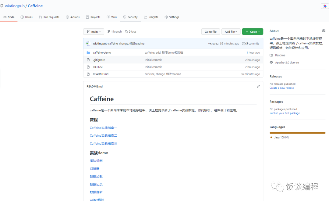 我这边专门维护了一个github仓库,后续存放Caffeine实战文章、教程分析、以及组件和应用,有兴趣关注下