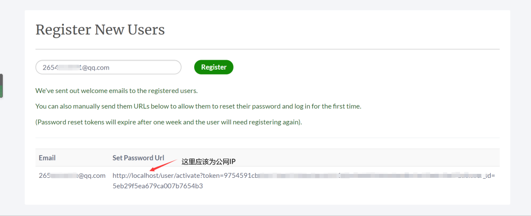 2、建立普通用户账号,该用户点击链接即可自行设置密码