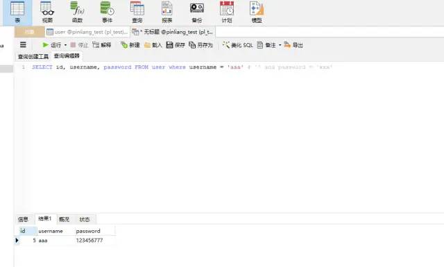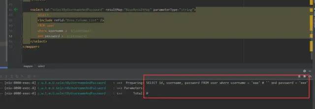 SELECT id, username, password FROM user where username = 'aaa' # '' and password = 'xxx'