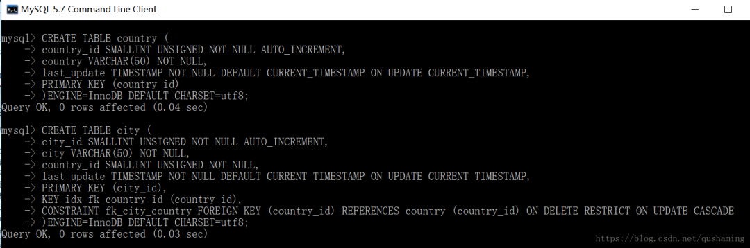 可通过SHOW CREATE TABLE 和 SHOW TABLE STATUS命令显示表外键信息。