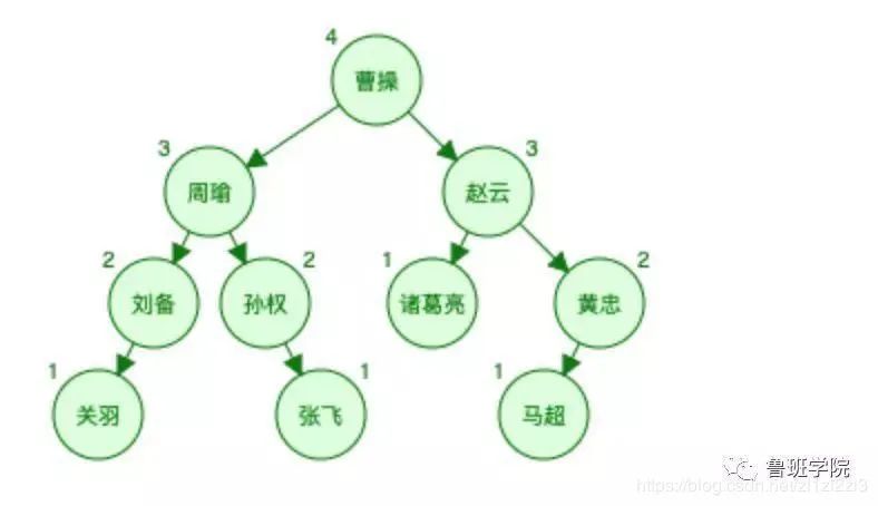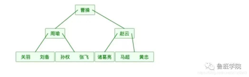 另外需要提醒的是,二叉树是有顺序的,简单的说就是“左边的小于右边的”假如我们现在来查找‘周瑜’,需要找2次(第一次曹操,第二次周瑜),比哈希表要多一次。而且由于完全平衡二叉树是有序的,所以也是支持范围查找的。