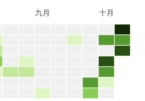 今天周三,高效日,我们部门提倡6点下班,实际上安琪拉转岗来上海之后,基本每天都6点准时下班,但是下班不代表不干活,我已经连续二周都肝到1-2点,有2天到3点,看下我九月和十月的代码提交图,最近的深绿都快黑了,所以自然没时间写技术分享,周末也没停。