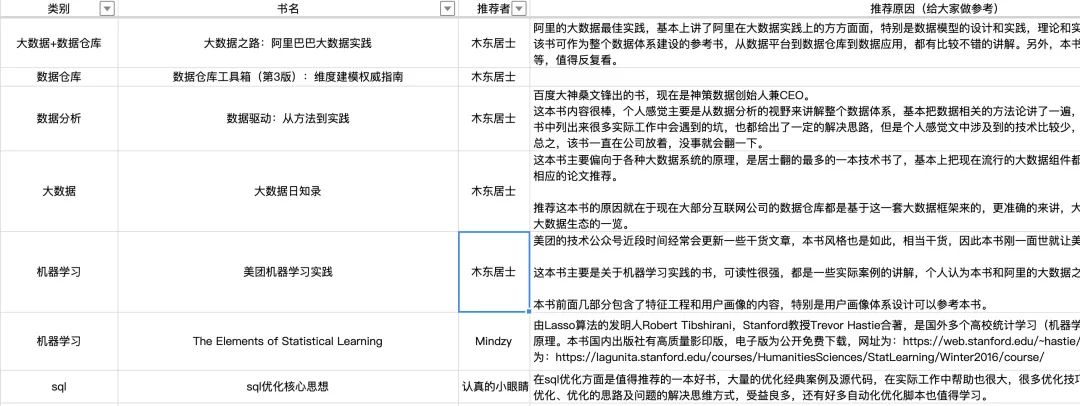 在我们十多个数据交流群中,大家经常会问有什么数据相关的书可以推荐,因此居士建立了一个共享文档,大家把自己认为不错的书推荐出来,并写上推荐语。