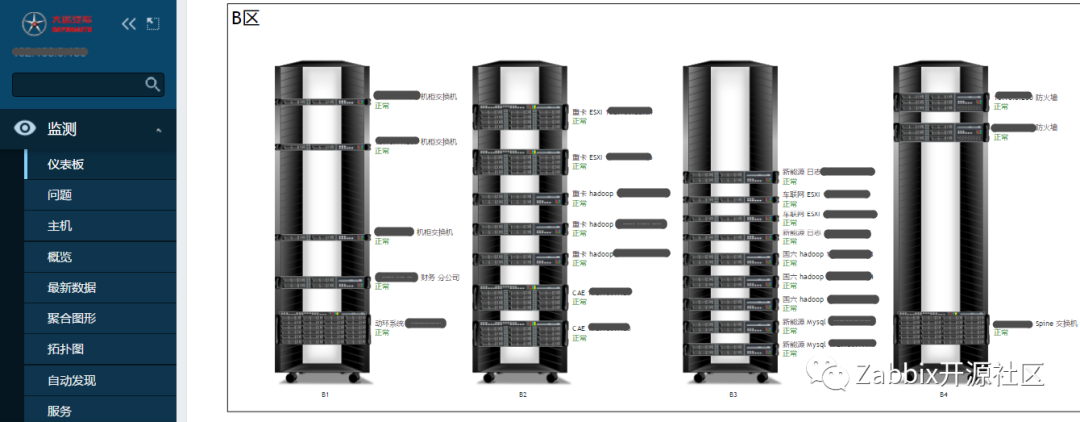 最终,我们通过上述方式,实现了数据中心硬件设备机柜图可视化展示,一目了然非常地直观,总体效果如图: